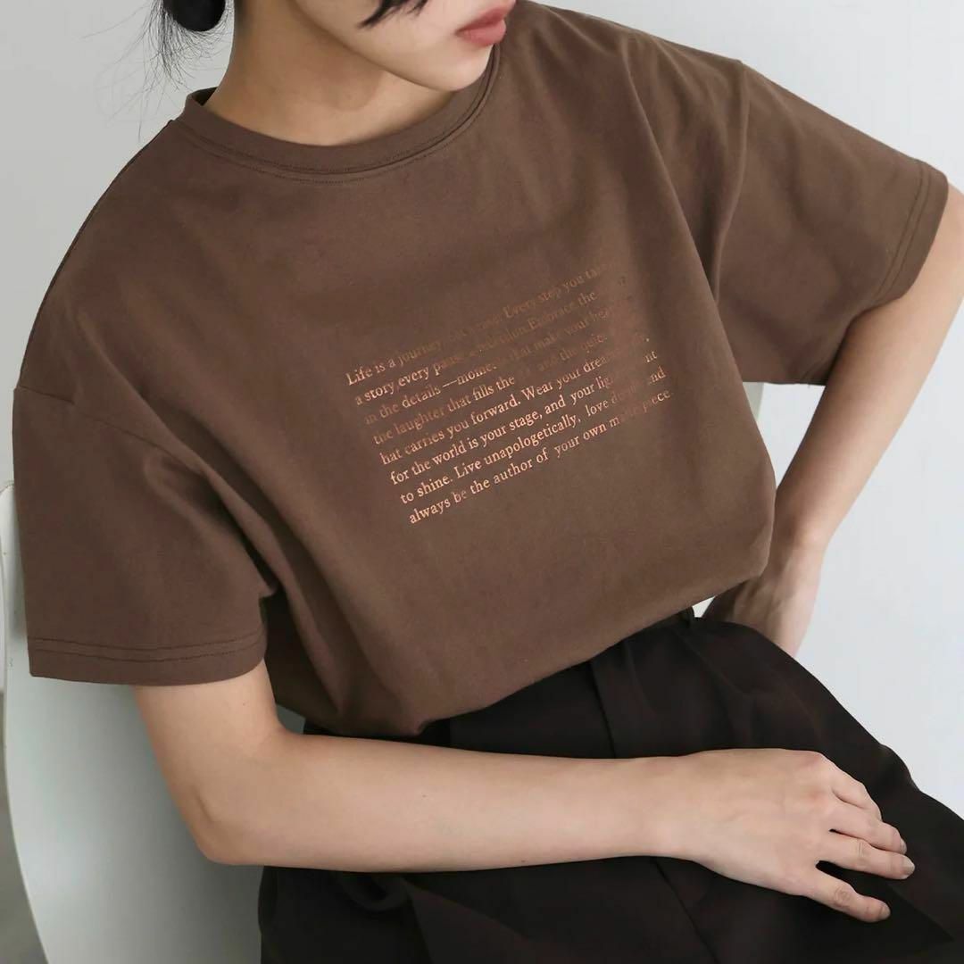 【新品】 ヘラム 箔プリントロゴTシャツ ブラウン 箔 Tシャツ 半袖