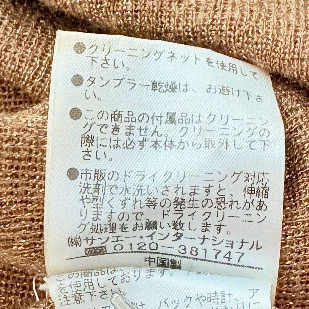 Vネックデザインのブラウンカーディガン、前開きボタン付きで、カジュアルにもフォーマルにも対応可能。