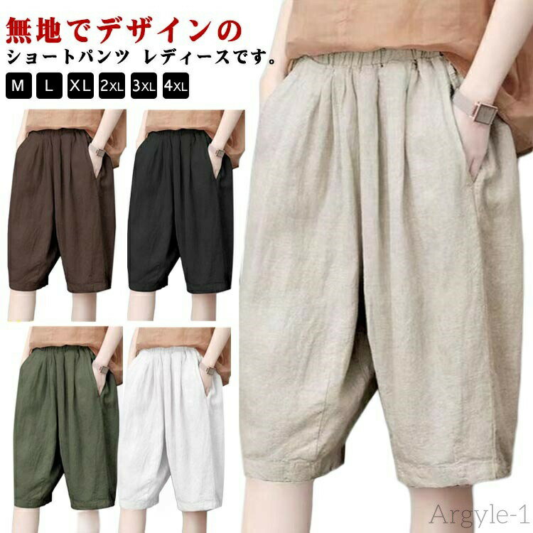 【送料無料】ハーフパンツ レディース 春 夏 5分丈 ポケット付き ゆったり ハイウエスト 薄手 春夏 イージーパンツ 体型カバー ルームウェア パンツ