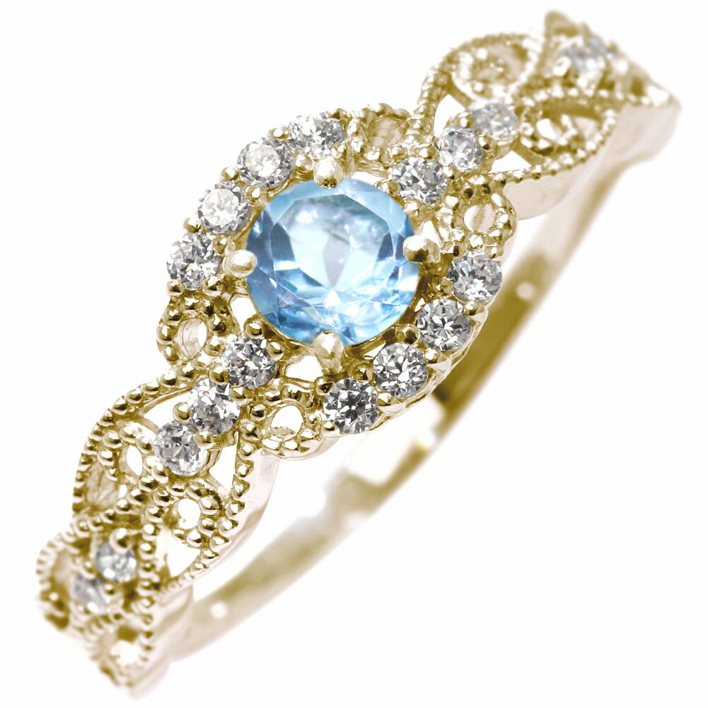 リング ブルートパーズ 18金 指輪 18K レディース 11月誕生石 ブルートパーズリング ゴールドリング 誕生石リング ヘイローリング 透かし 取り巻き ヨーロピアン 天然石リング エレガント 20代 30代 40代 50代
